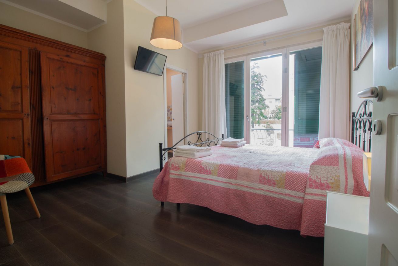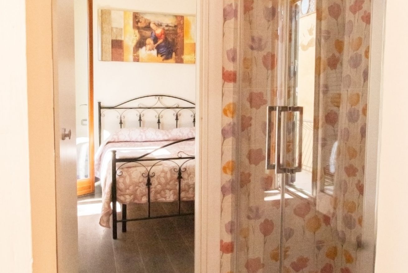 La nostra camera matrimoniale con balcone di 18 mq, è dotato di una camera da letto con letto matrimoniale, armadio e gode di una porta finestra che porta al nostro grazioso balcone con affaccio sulle Mura Medicee di Grosseto, dove potete ammirare una meravigliosa vista sulla Città e sulle colline circostanti ed un nuovissimo bagno con cabina doccia e tutti i suoi comfort.